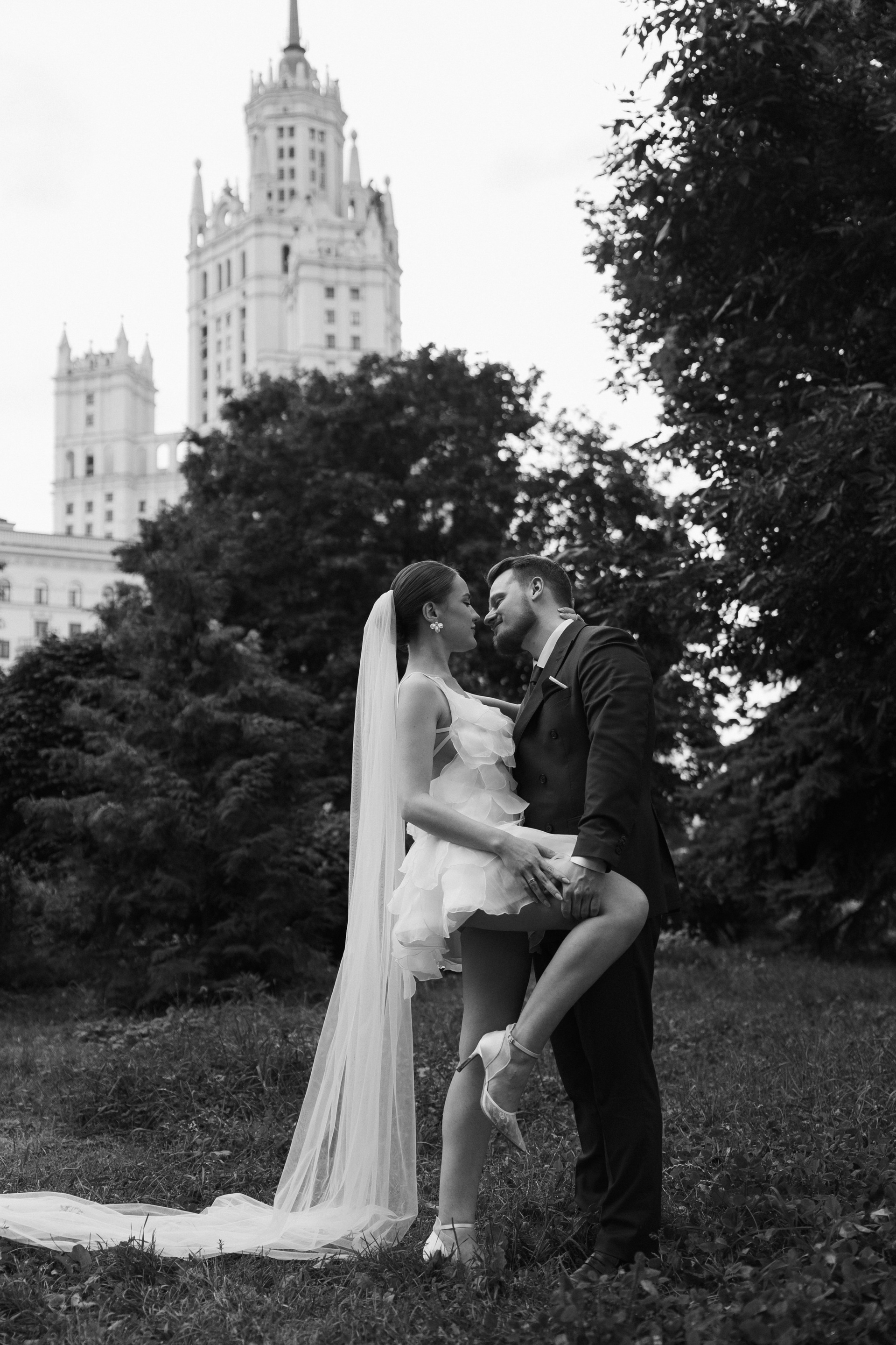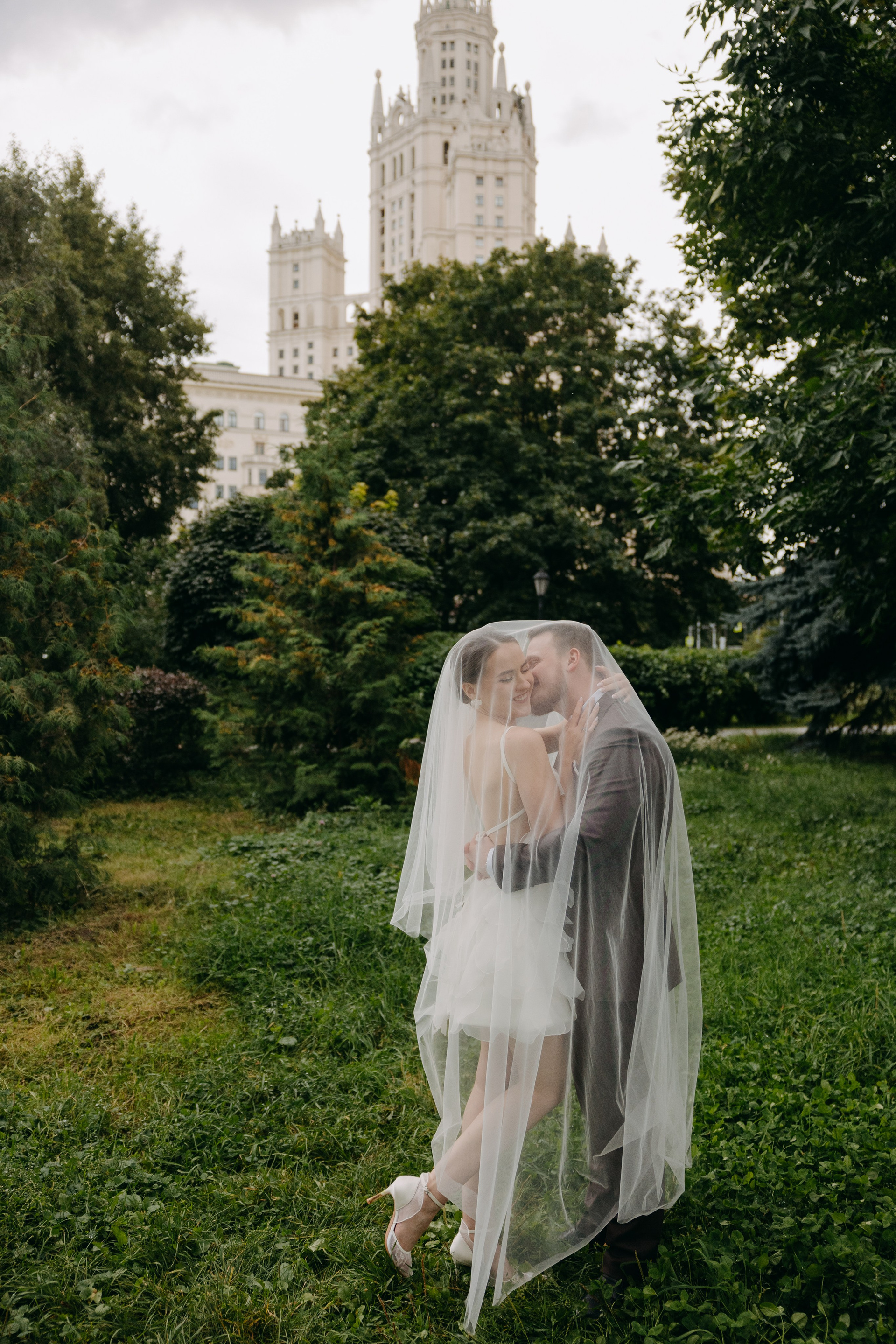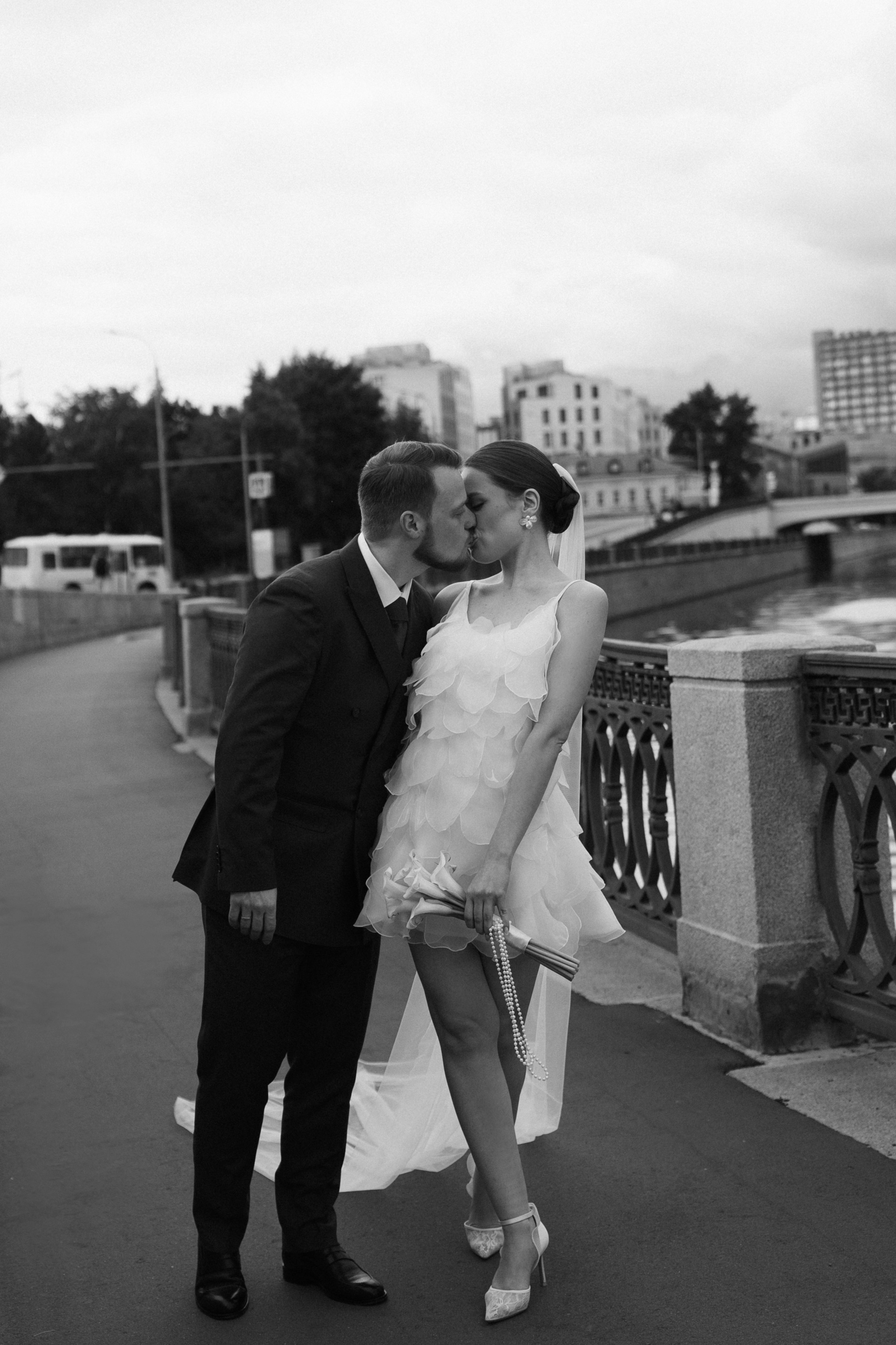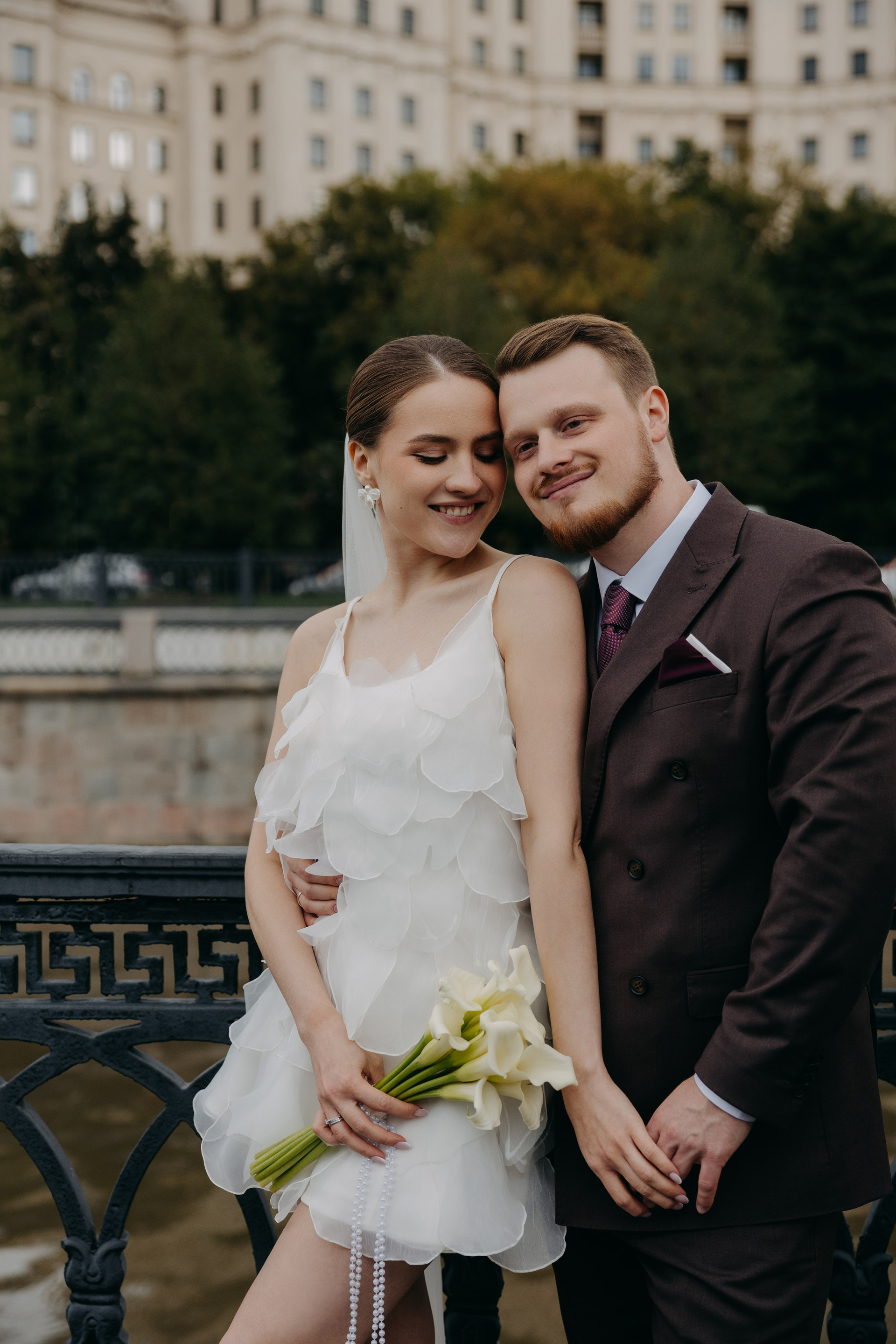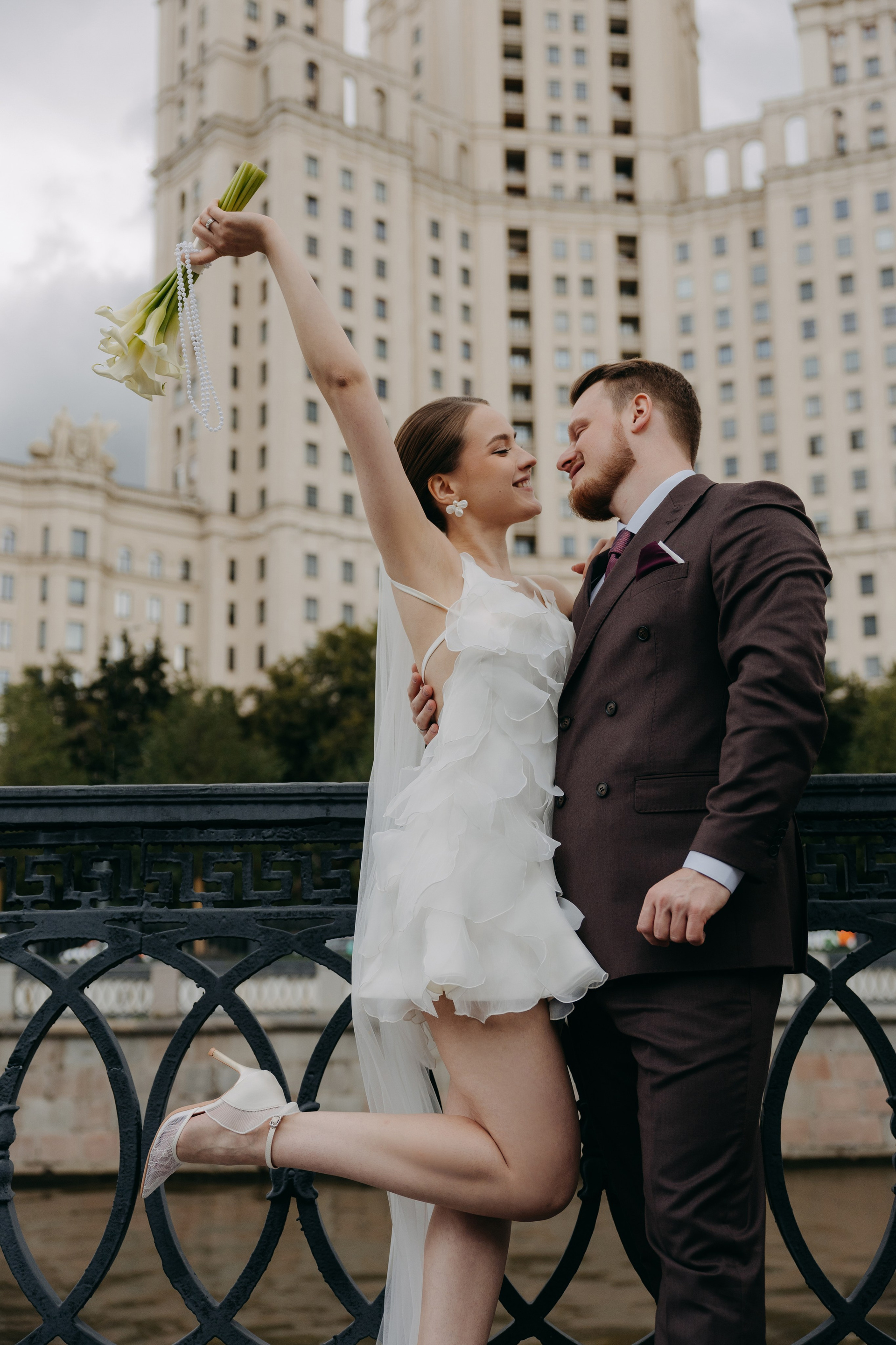 Ира и Лешапрогулка возле Котельнической набережнойроспись во Дворце бракосочетания № 4