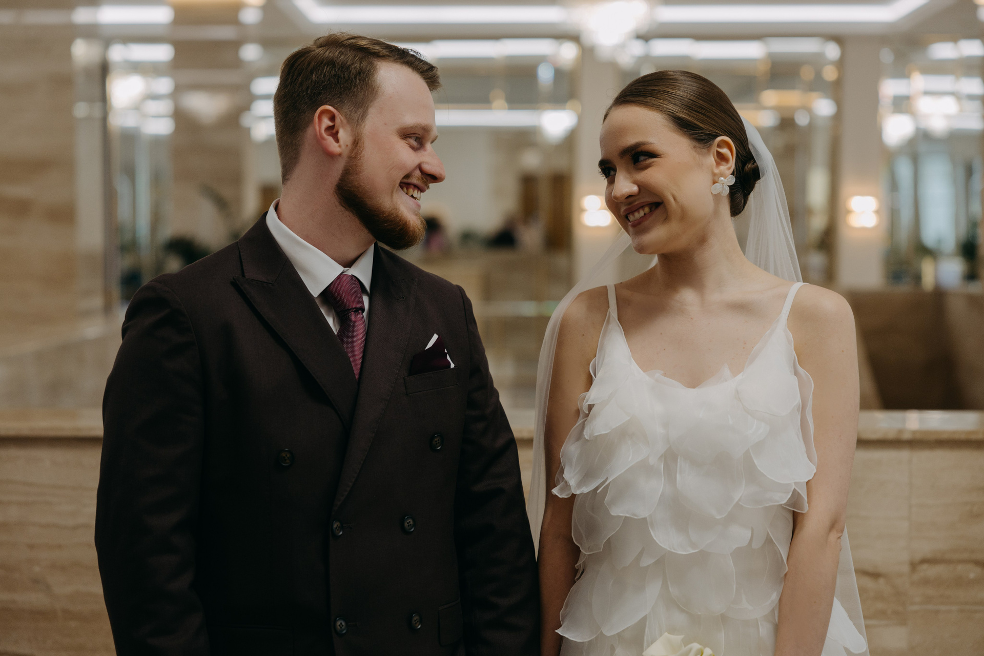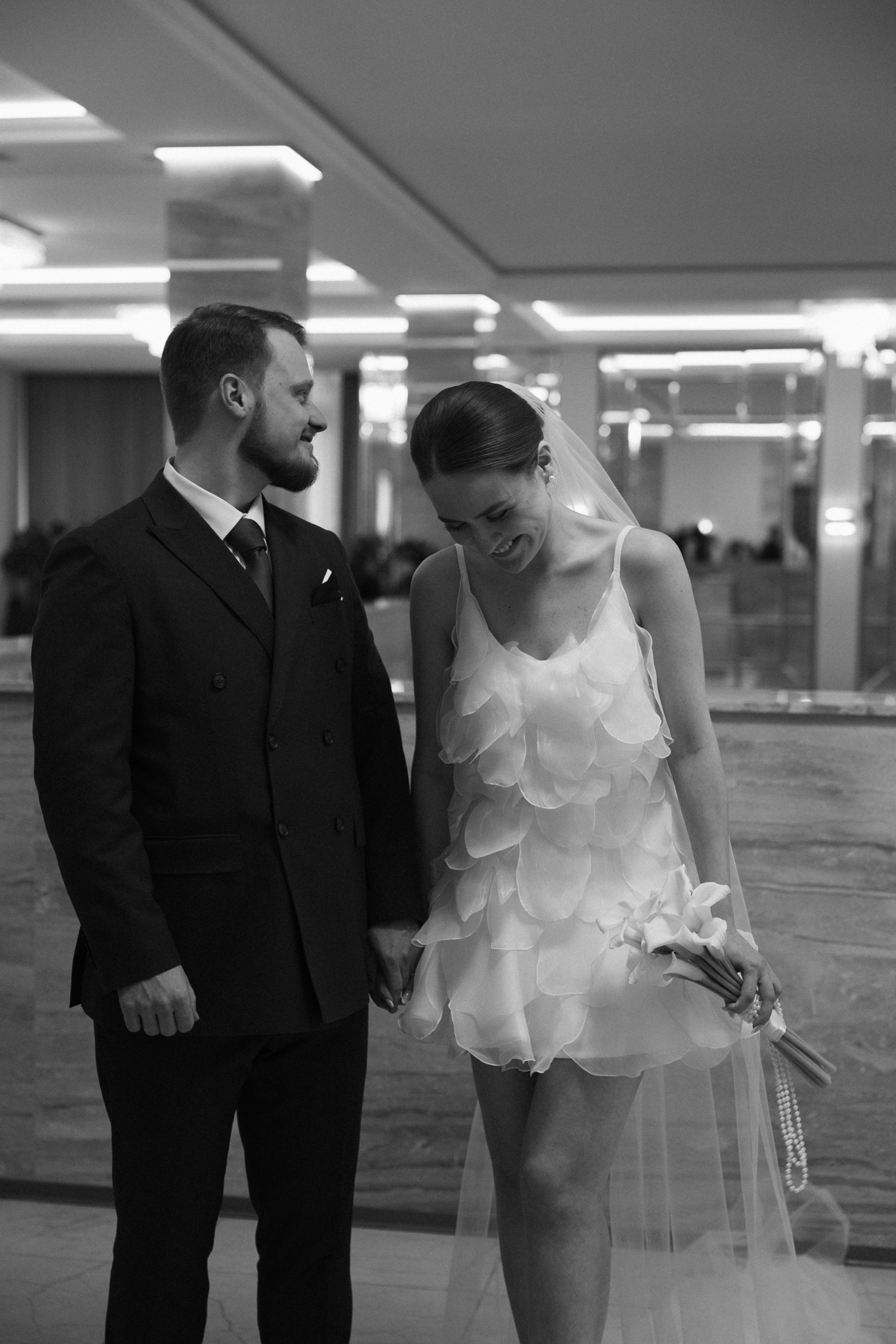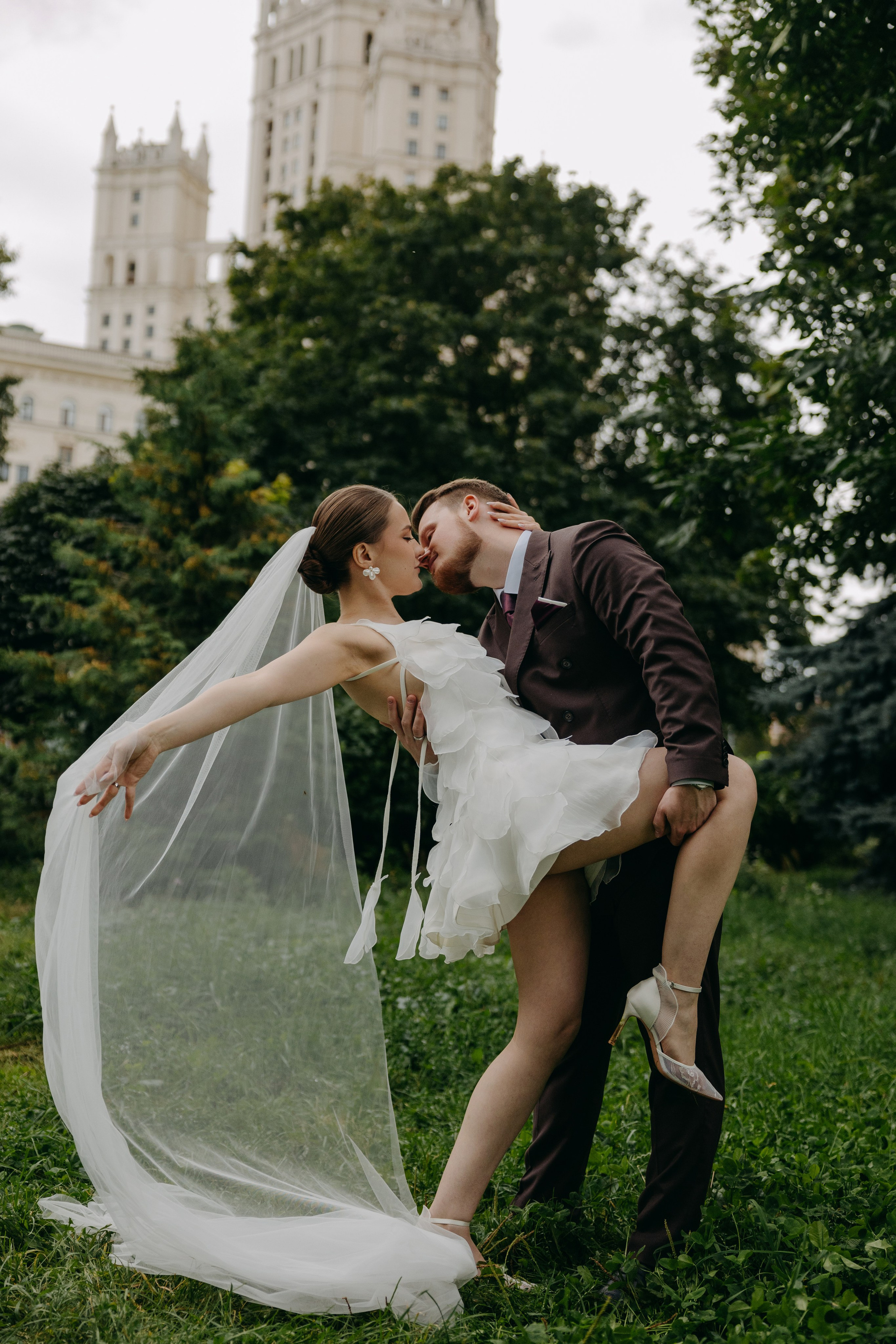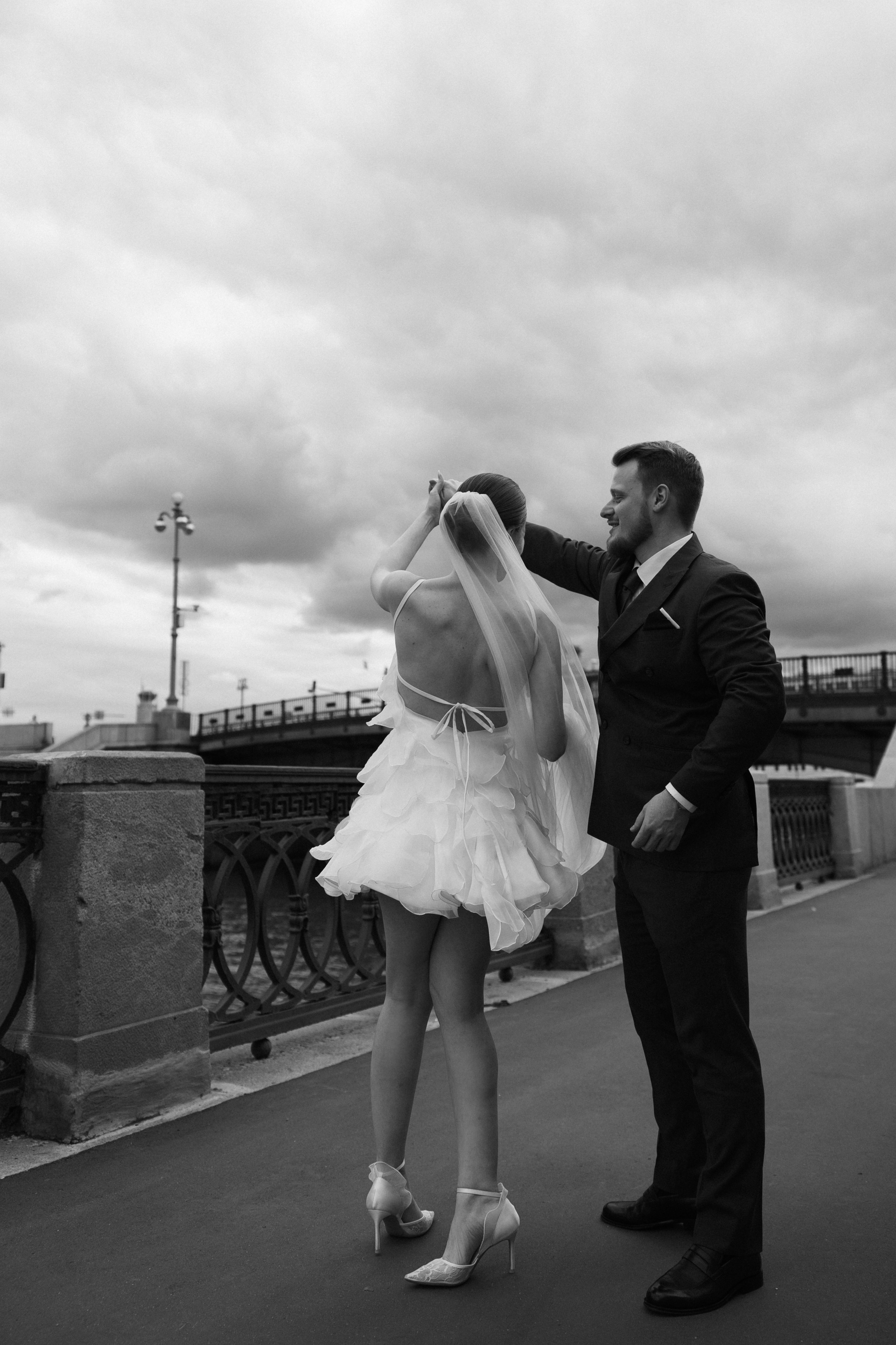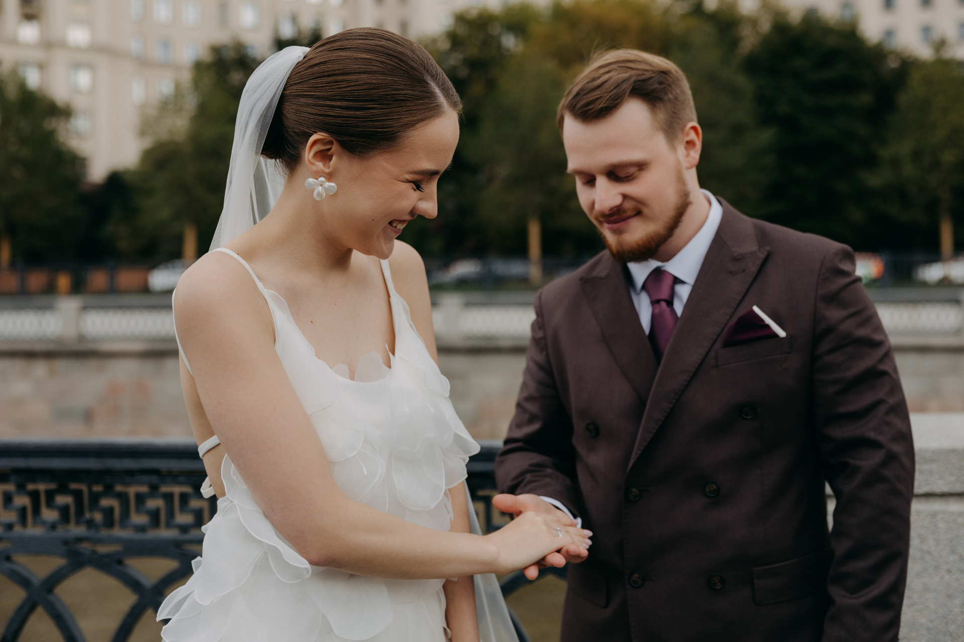 Ира и Лешапрогулка возле Котельнической набережнойроспись во Дворце бракосочетания № 4